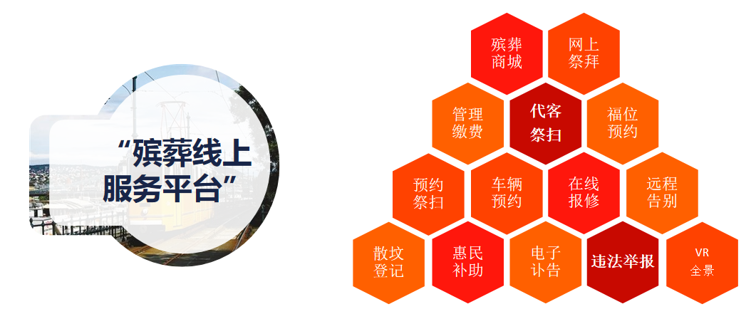 武汉汉阳殡葬线上服务平台为丧属建立快捷、便利、高效的互联网+殡葬服务平台通道。持续推出网上纪念馆、线上商城、电子讣告、网上祭扫、预约祭扫、代客祭扫、福位预约、管理缴费、在线报修、墓位导航、远程告别、灵车预约、厅堂预约、火化机预约、VR全景等多项涵盖从逝者去世到骨灰落葬的整套服务,真正做到身后一件事的便民举措,减少群众投诉,杜绝乱收费现象,规范了殡葬市场。